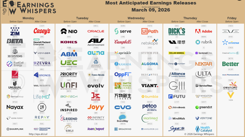 - Mar 10 (after close): Oracle (ORCL) — cloud/OCI, backlog (RPO) y build-out de data centers.